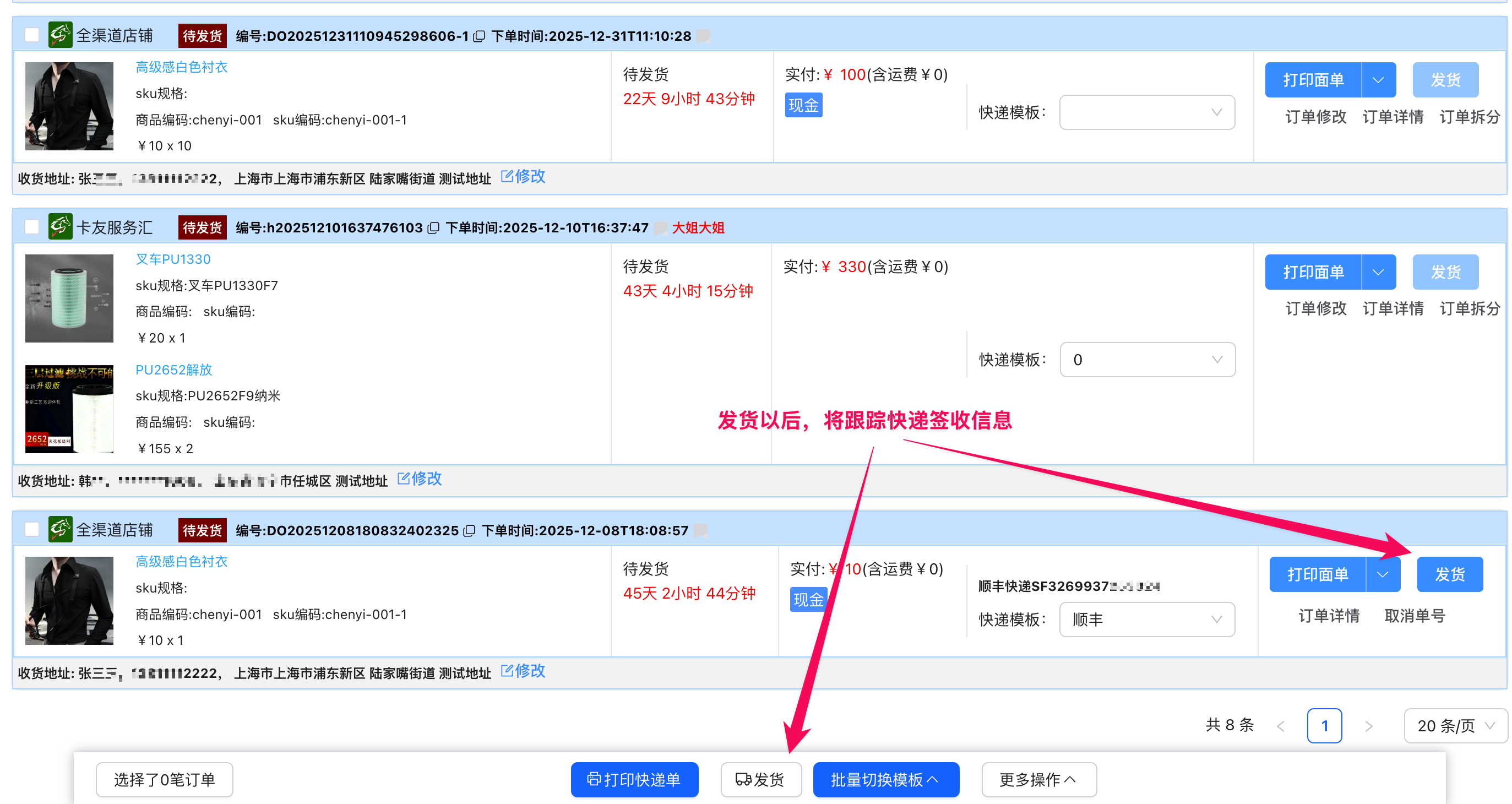 对订单进行发货以后,系统会自动跟踪快递的流转信息。