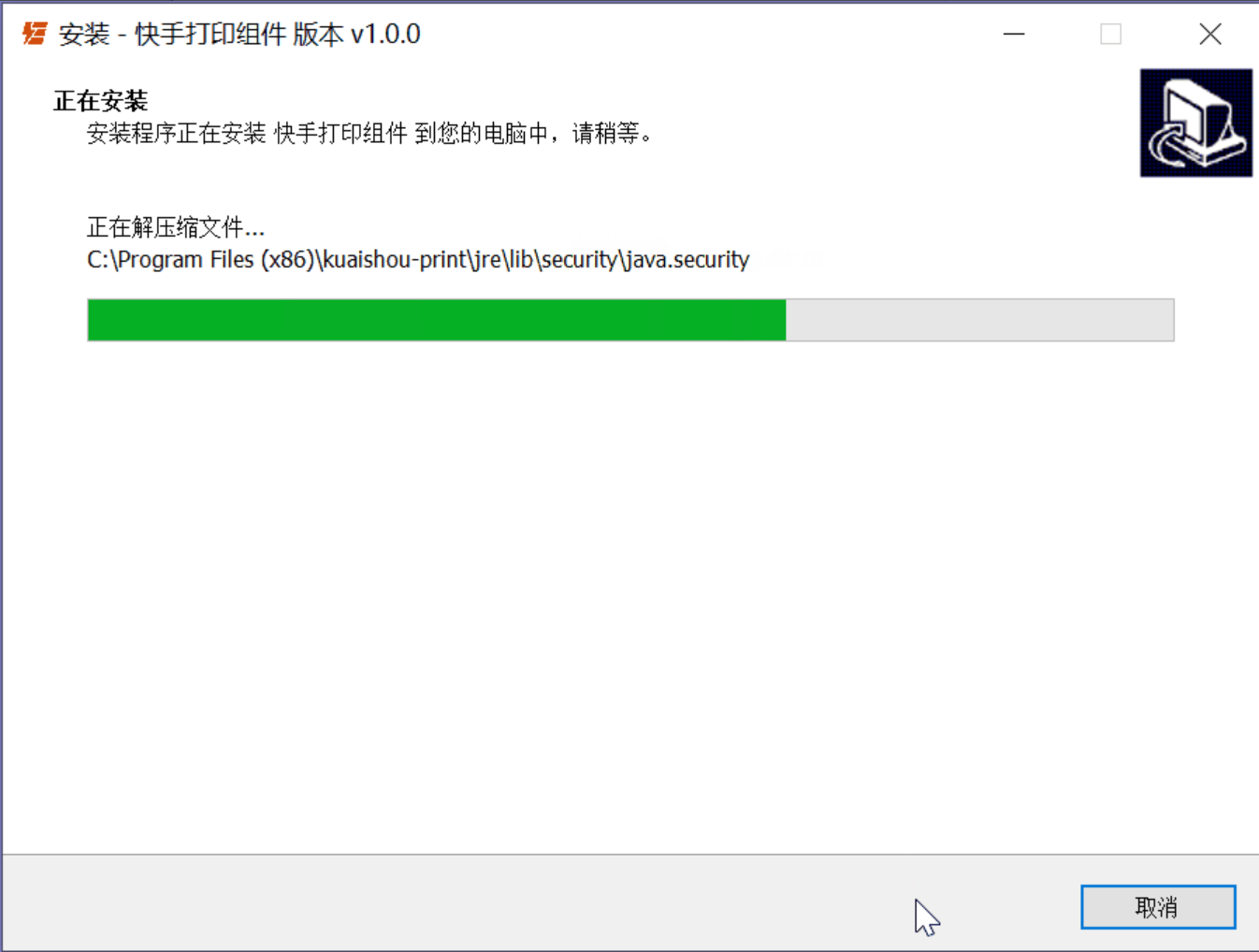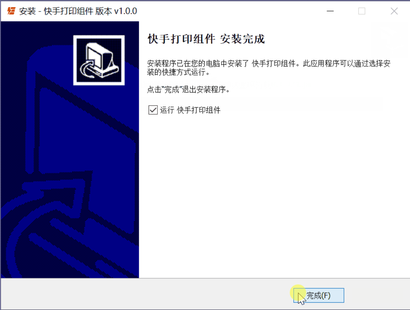 下载完成后,双击文件进行安装即可,下完完成后,会在电脑桌面生成一个名为“快手打印组件”的小图标